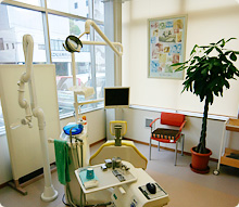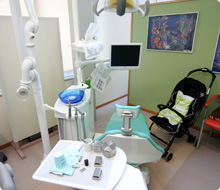 診療台に搭載されておりますモニターで、お口の様子を実際に患者様にも見て頂きながら治療を進め、より安心な治療を心がけております。診療室内もベビーカーや車いすでそのまま入れるスペースがあります。
